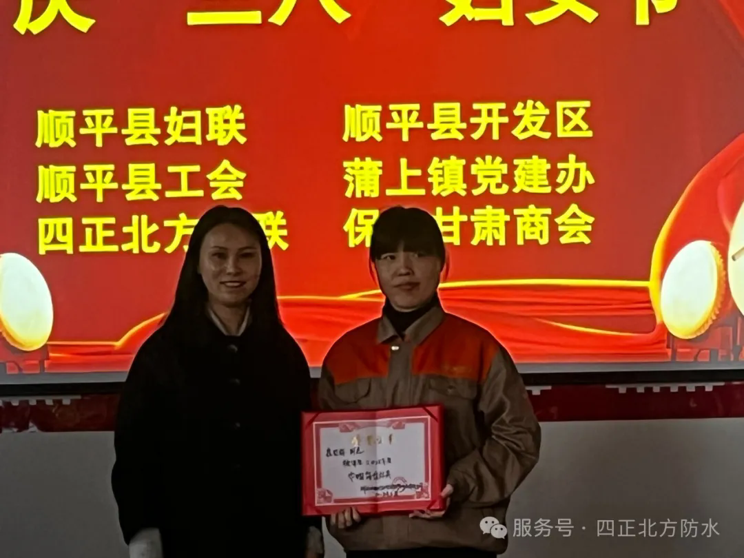 2025年3月7日,河北四正北方新型材料科技有限公司聯合順平縣婦聯、順平縣開發區、順平縣總工會、蒲上鎮黨建辦、甘肅商會婦聯五家單位,共同舉辦"展巾幗風采·鑄時代輝煌"國際婦女節紀念活動。活動通過"紅色教育+榜樣表彰+文化展演"的創新形式,展現新時代職業女性風采。